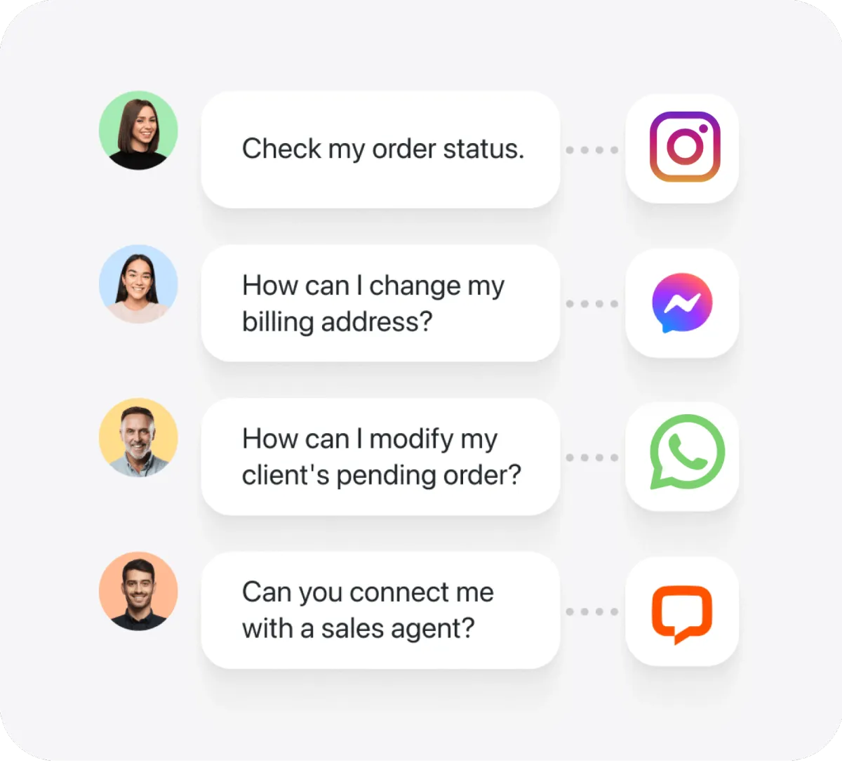 Deskline integrates with WhatsApp, Instagram, Facebook Messenger, Telegram, and SMS.